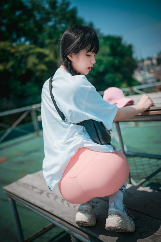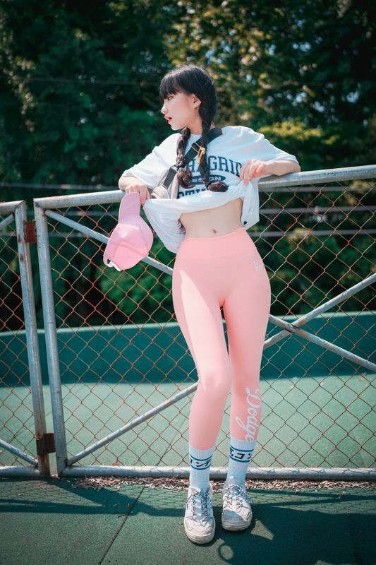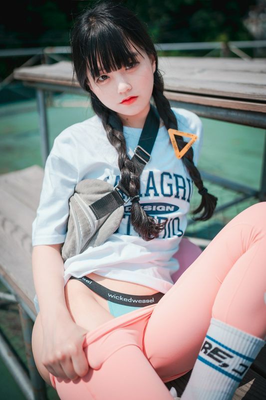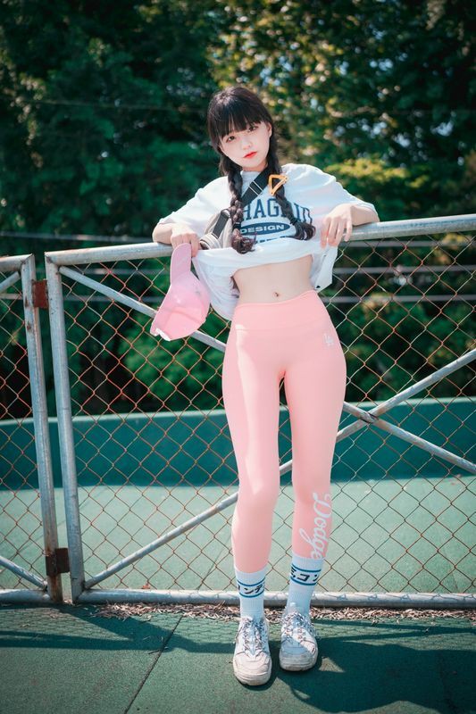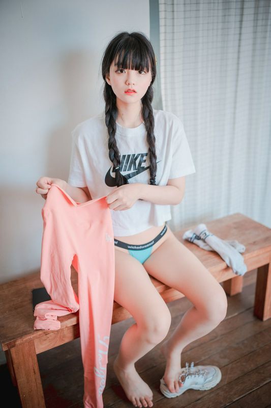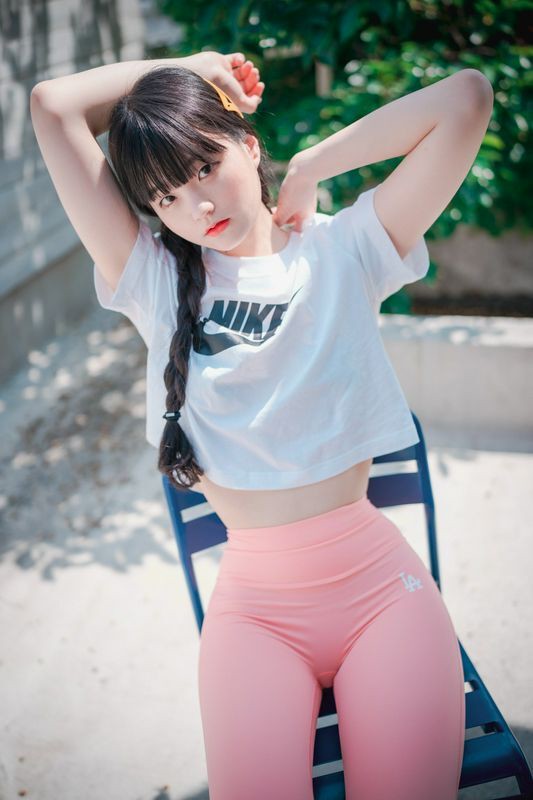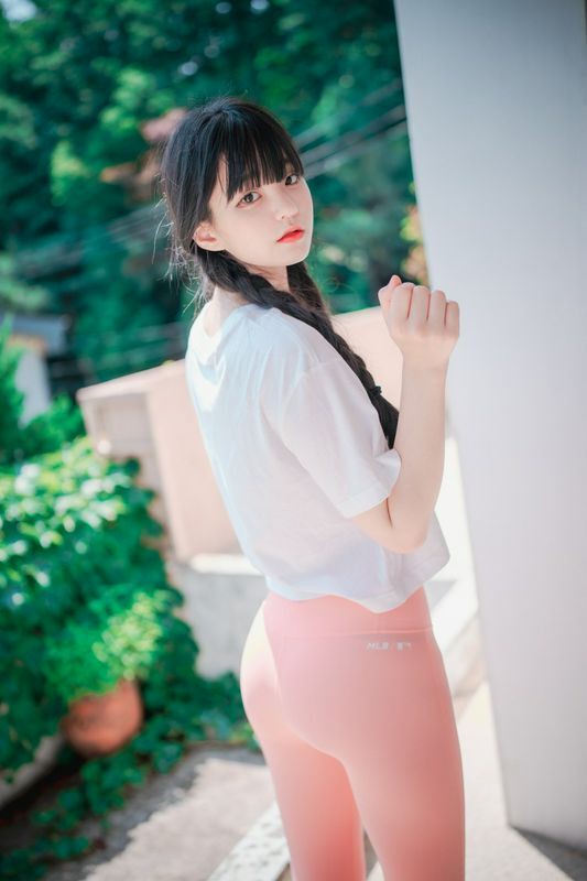 Jenny정제니粉色紧身裤2脱出蓝色丁字裤泄色气