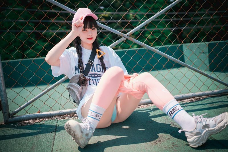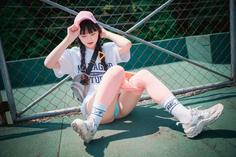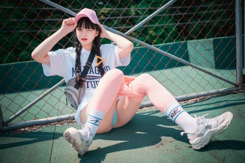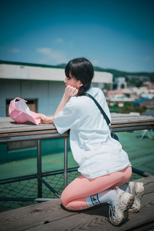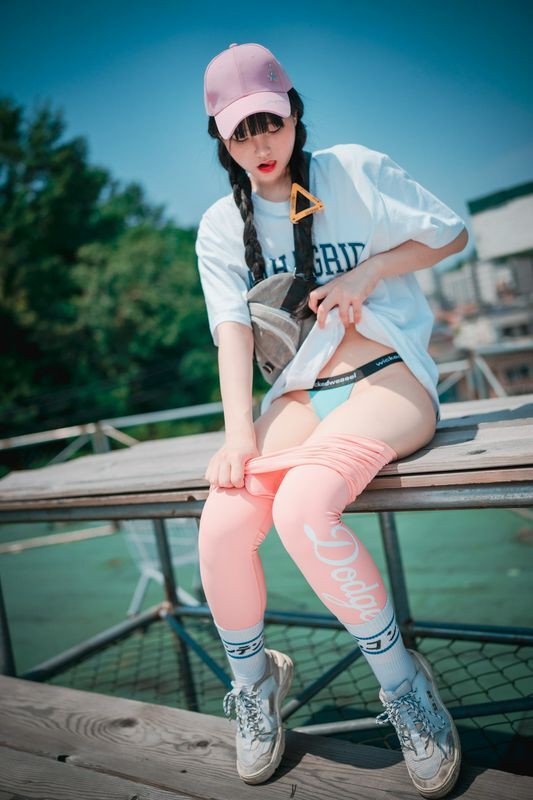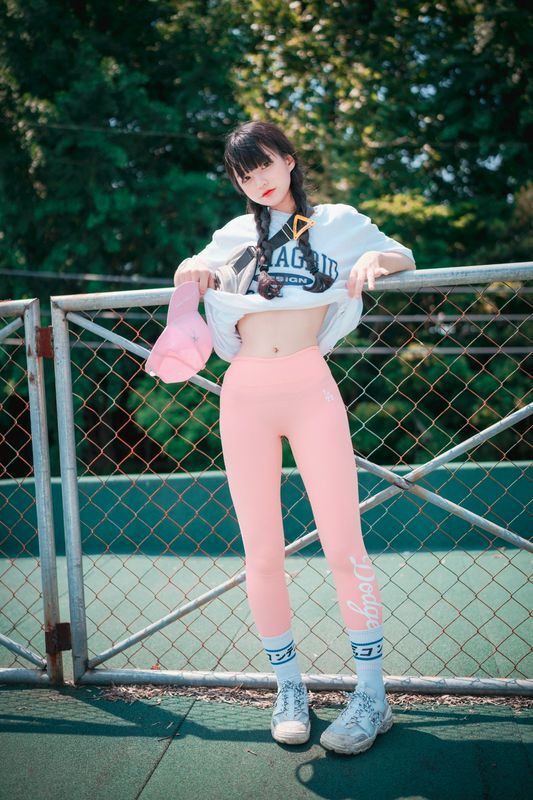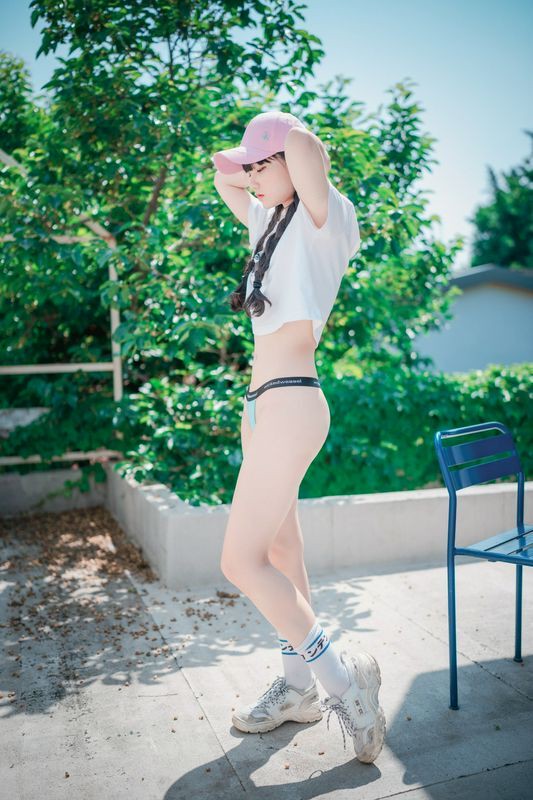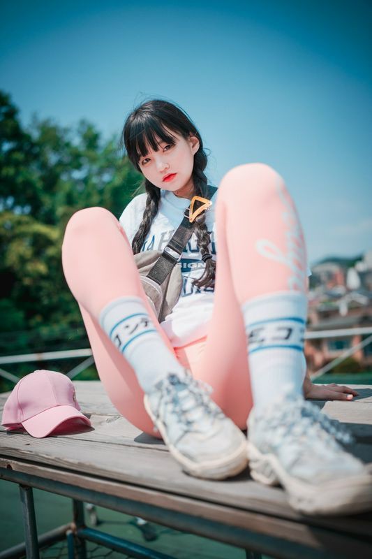 Jenny정제니粉色紧身裤2脱出蓝色丁字裤泄色气